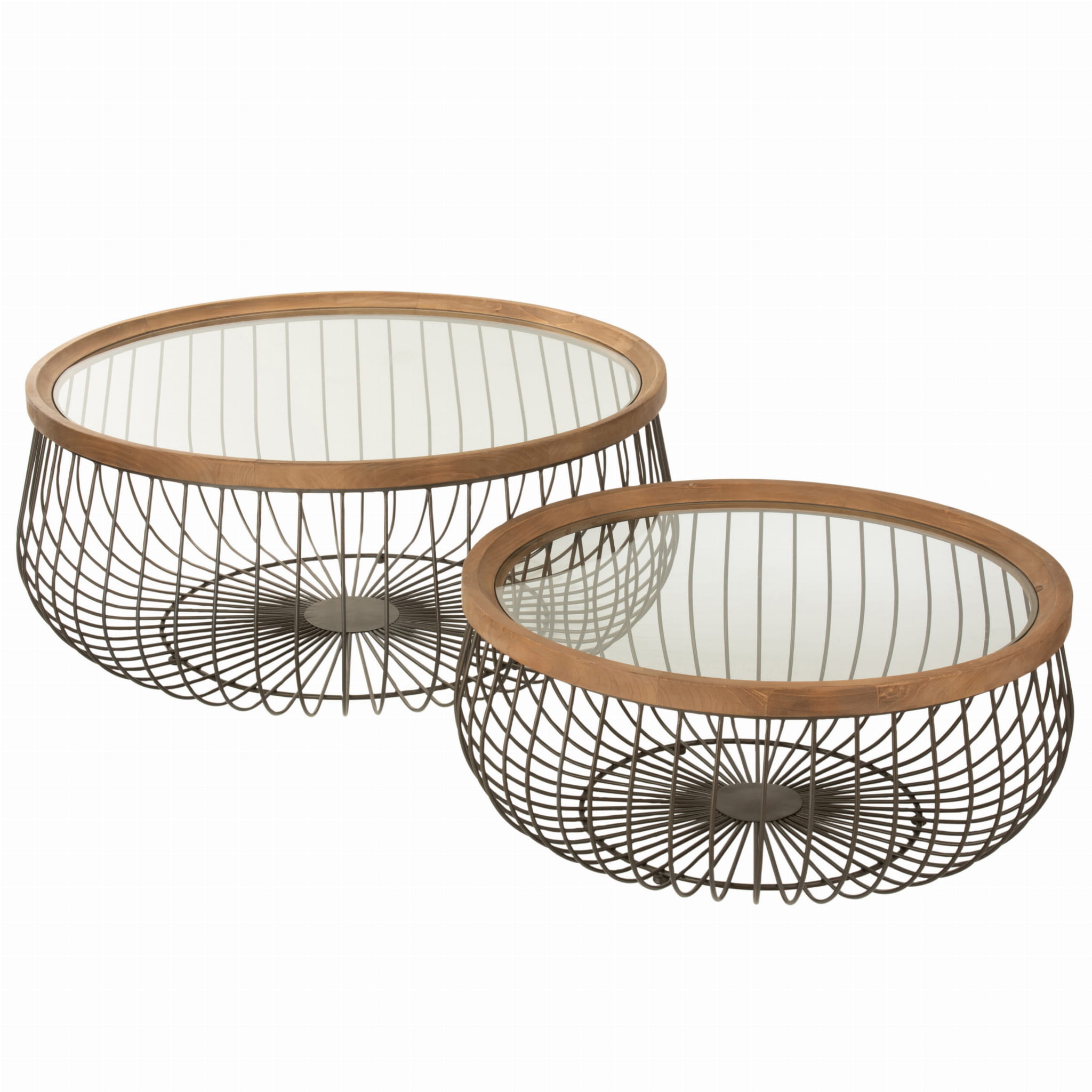 Blaty wykonane są ze szkła, które nadaje stolikom lekkości wizualnej i eleganckiego charakteru. Całość została subtelnie wykończona drewnianą ramą, wprowadzając do aranżacji ciepło naturalnego materiału i podkreślając wysoką jakość wykonania. To detal, który sprawia, że stoliki prezentują się wyjątkowo zarówno w nowoczesnych, jak i bardziej klasycznych przestrzeniach.