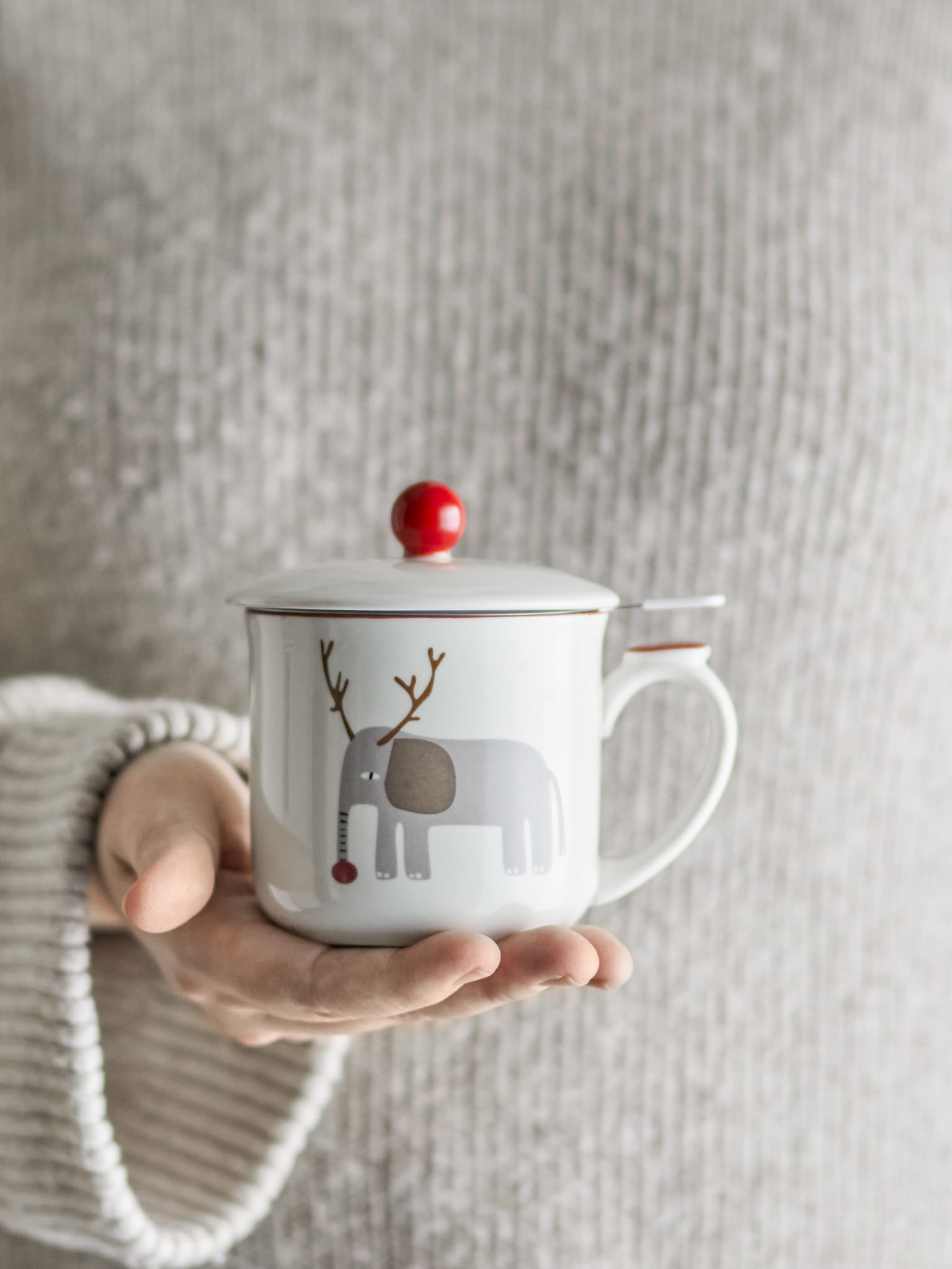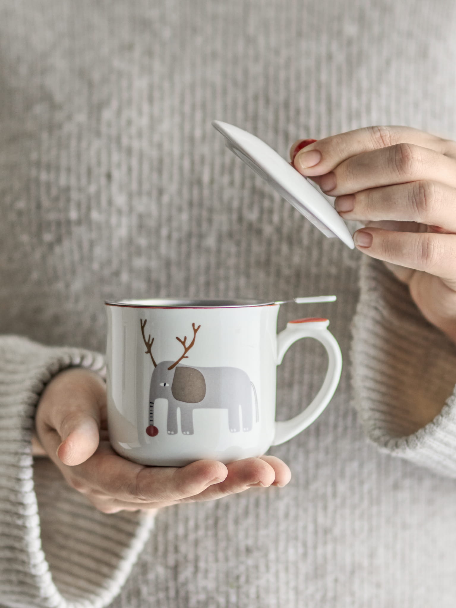 Kubek Valentin z pokrywką i sitkiem zielony kamionka